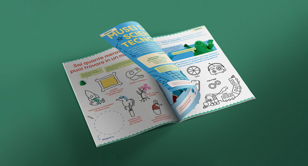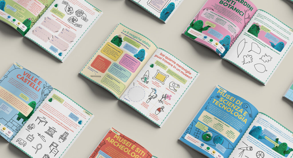 Abbonamento Musei incentiva la fruizione dei musei anche attraverso giochi e attività dedicate ai più piccoli. Ci hanno chiesto progettare e realizzare uno strumento cartaceo capace di stimolare i giovanissimi visitatori attraverso un’esperienza parallela, fatta di giochi e attività.
